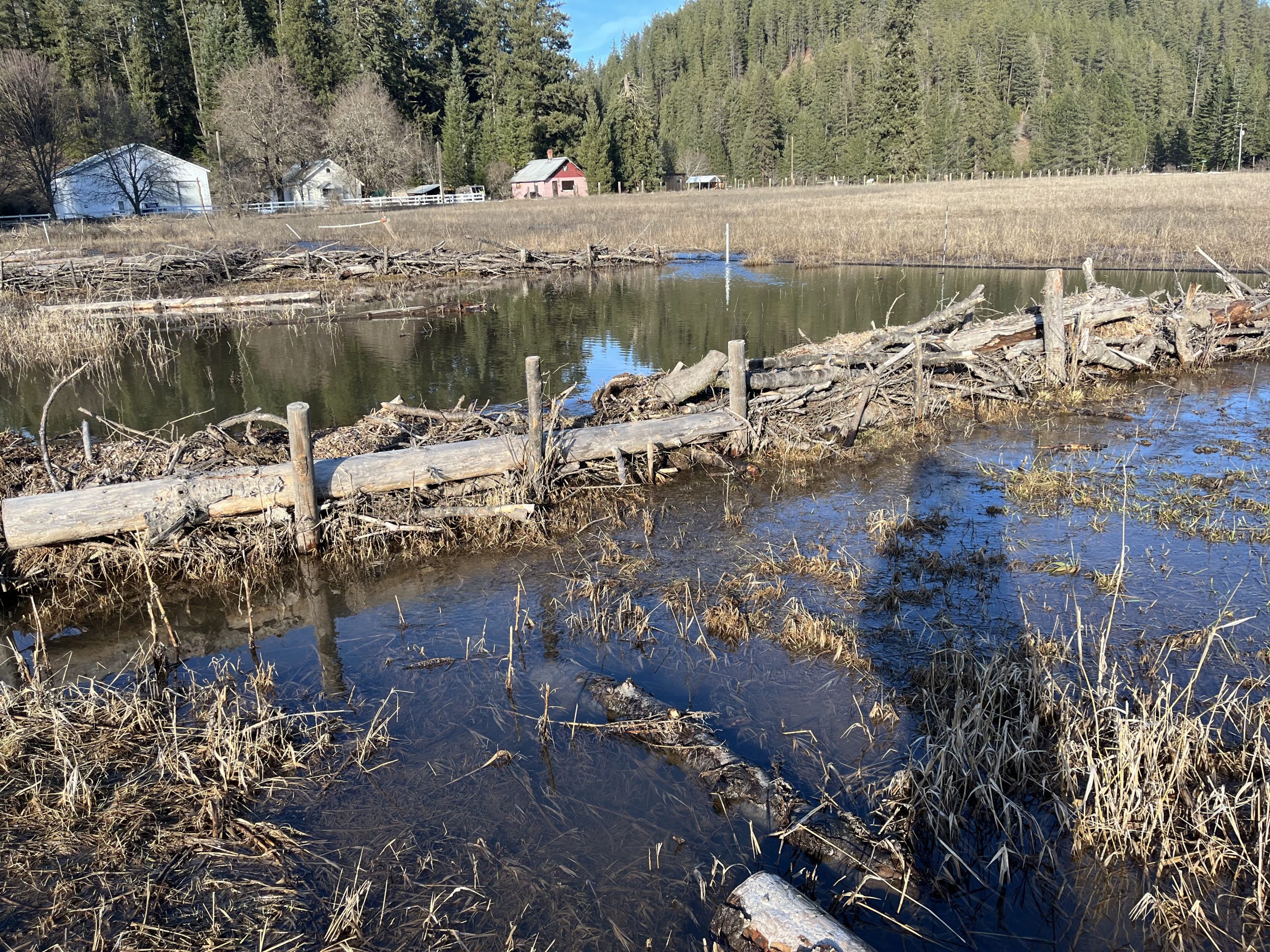 This project prevents sediment runoff into Cataldo Slough from South Schlagel Road, upstream from the slough. The Kootenai Shoshone Soil and Water Conservation District worked with a landowner along the road to establish a depositional area, which is a site where sediment can accumulate rather than flow into nearby water bodies. To create this area, the conservation district helped the landowner construct several water control structures in the creek drainage.