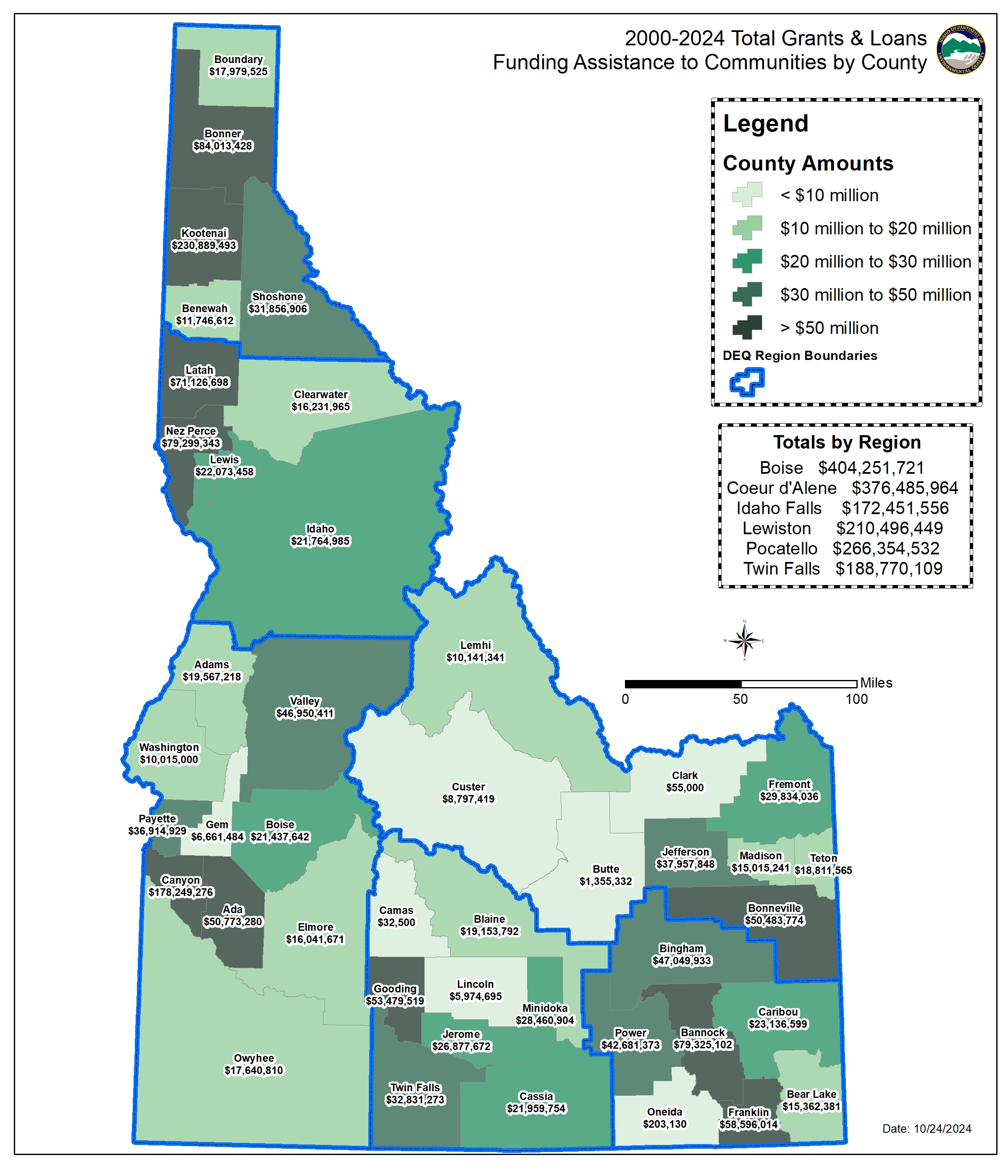 We administer federal and state funds for grants and low-interest loans to improve the quality of Idaho’s water resources. Our drinking water grants and loans assist eligible public drinking water systems with facility planning projects to ensure safe and adequate drinking water supplies. Our wastewater grants and loans help entities build or repair existing wastewater treatment facilities to achieve and maintain compliance with state and federal standards or to provide direct water quality benefits.